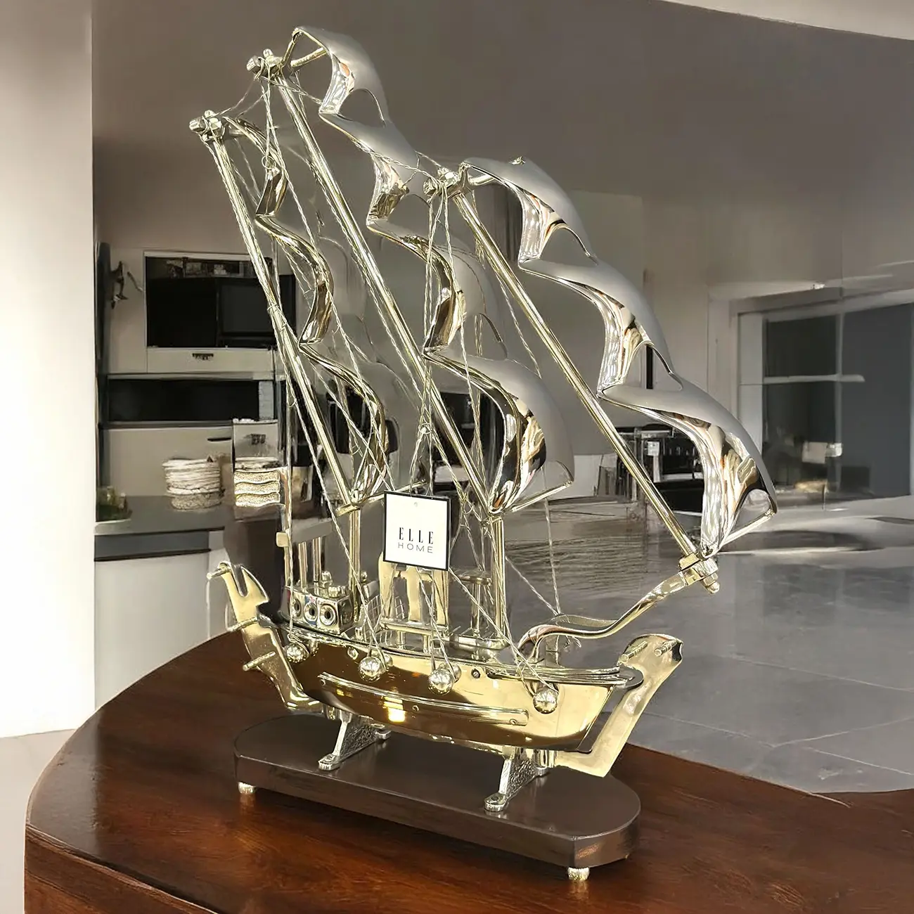 Elle Home Gemi Krom, krom malzemeden üretilmiş modern ve minimal bir gemi tasarımıdır.